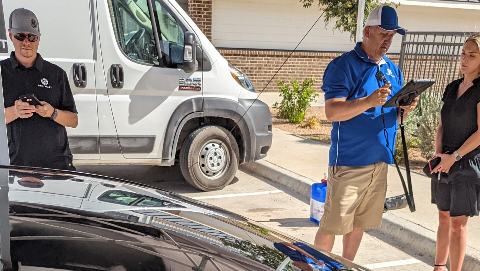First, one of our evaluators will come to you for a free 15 minute evaluation to see if your vehicle qualifies for our Free Hail Valet Services. This is the most advanced hail repair process in Texas and our proprietary software reduces the time you are without your vehicle to about 1-2 days not weeks. Our team handles the entire process, works with your insurance company on your behalf, coordinates a free rental car, and shuttles your vehicle.